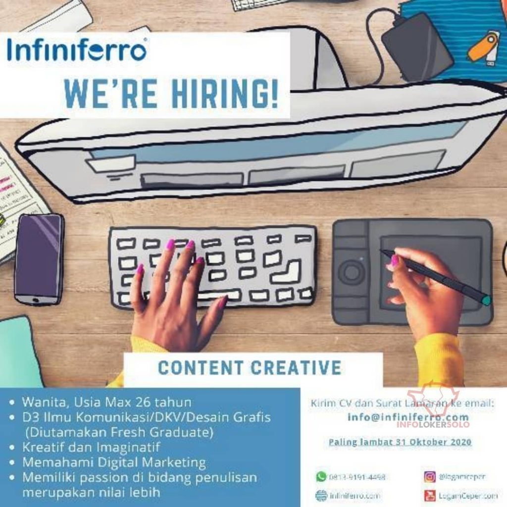 Sudah cek info Lowongan Kerja Content Creative Infiniferro di Solo? Lowongan Kerja industri di Solo. Cari info loker solo terbaru ? Cek sekarang juga….