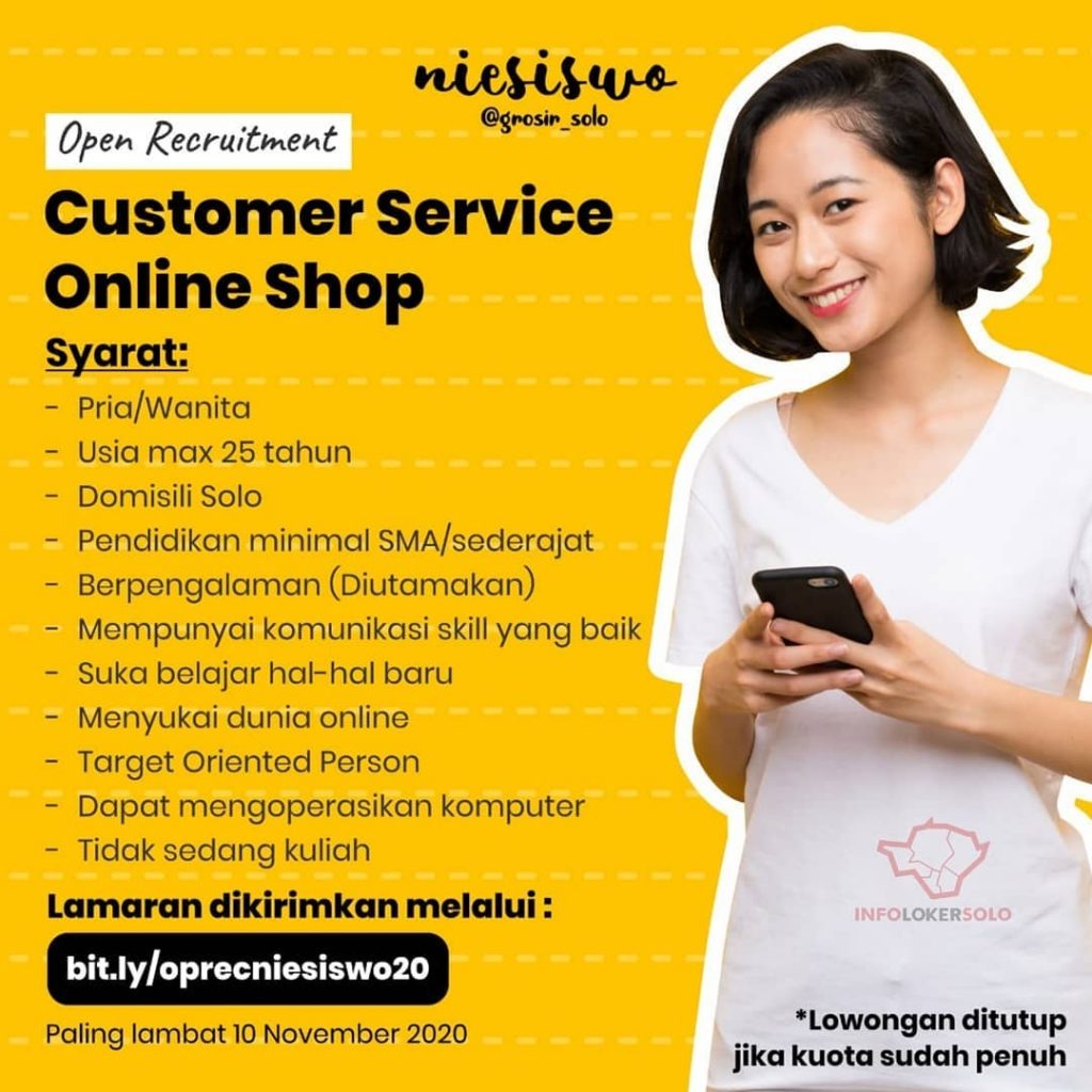? Loker Customer Service Online Shop Niesiswo Grosir Solo
