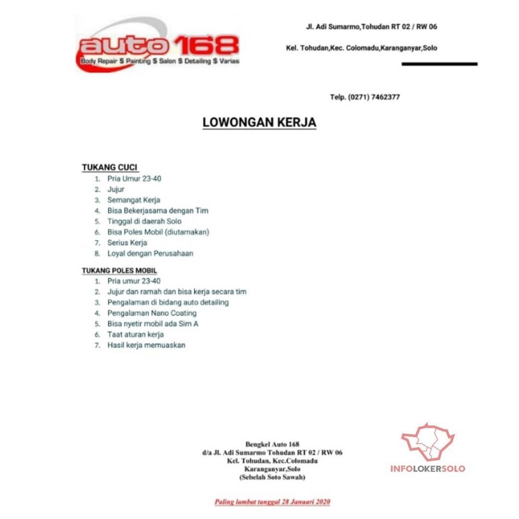 ? Loker Karyawan Bengkel Auto 168 Terbaru di Solo