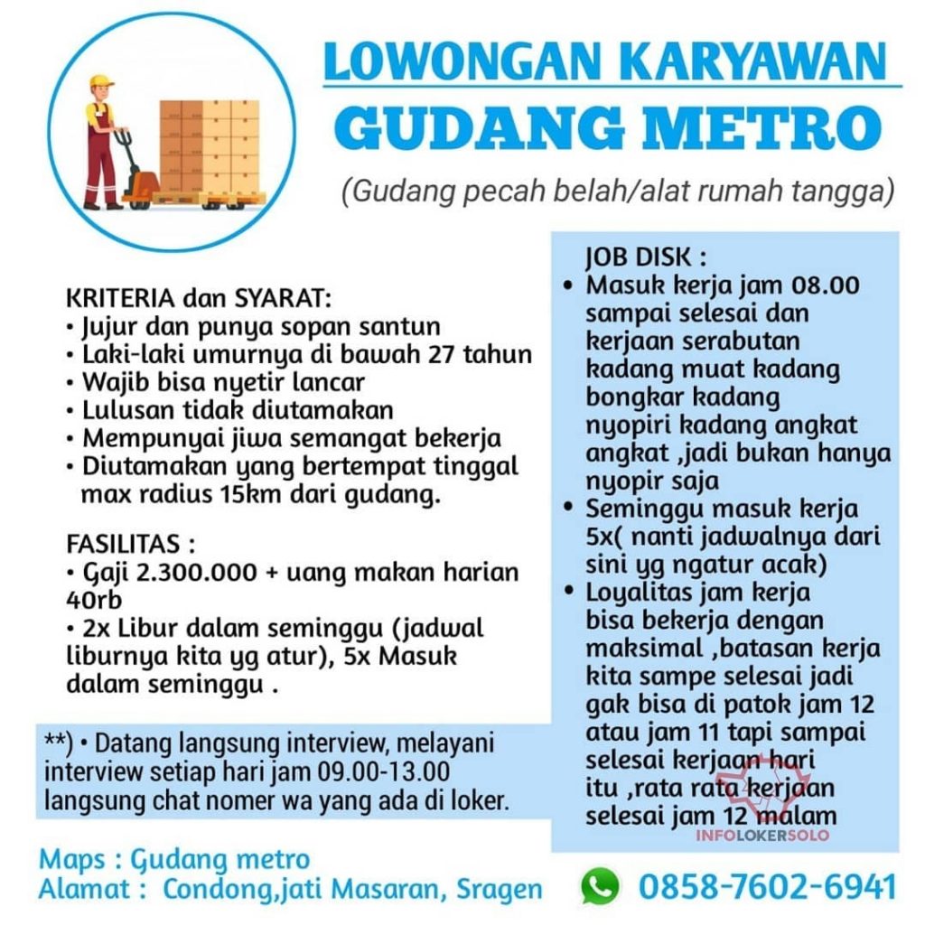 ? Loker Karyawan Gudang Metro Masaran Sragen