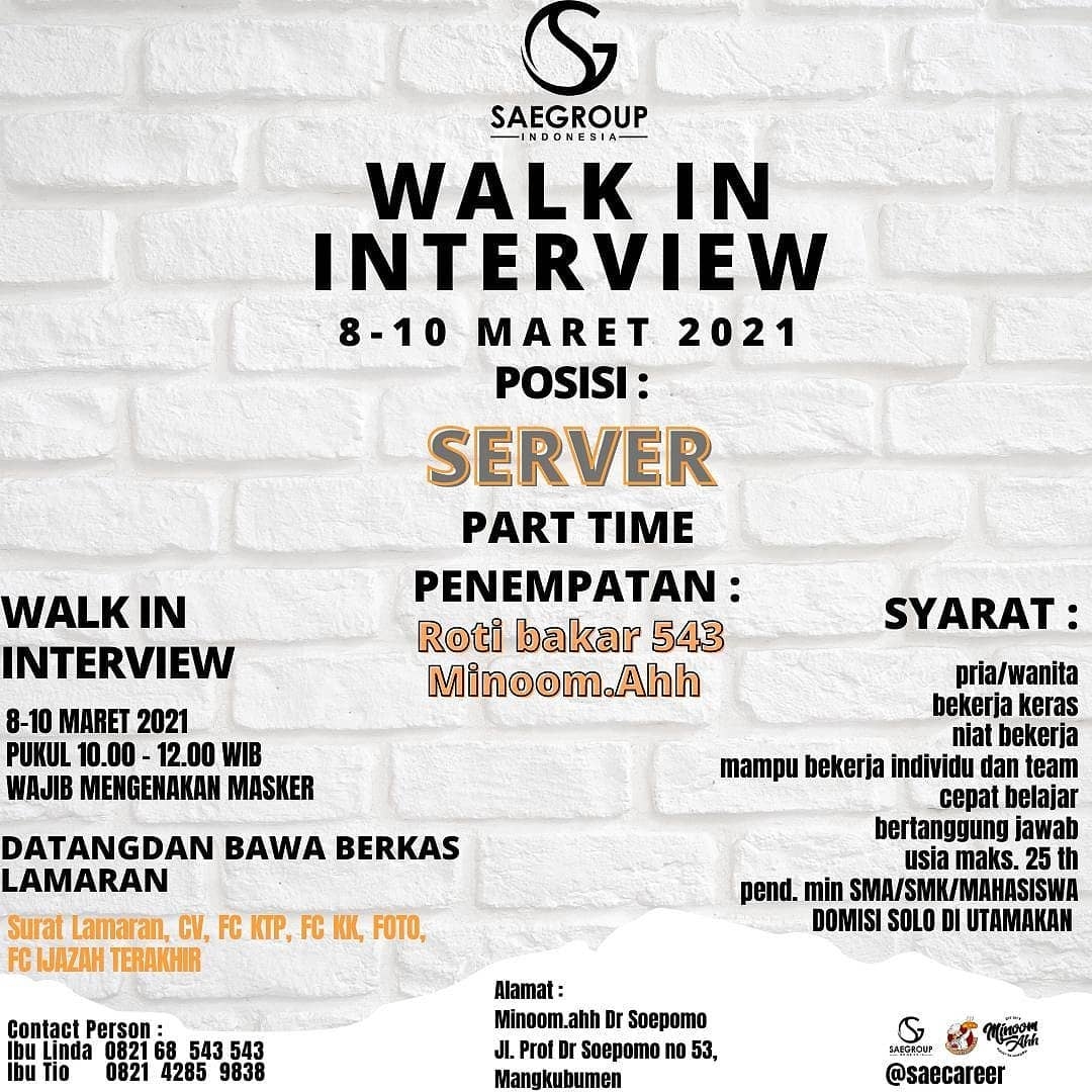 Lowongan Kerja Part Time Server Sae Group di Solo