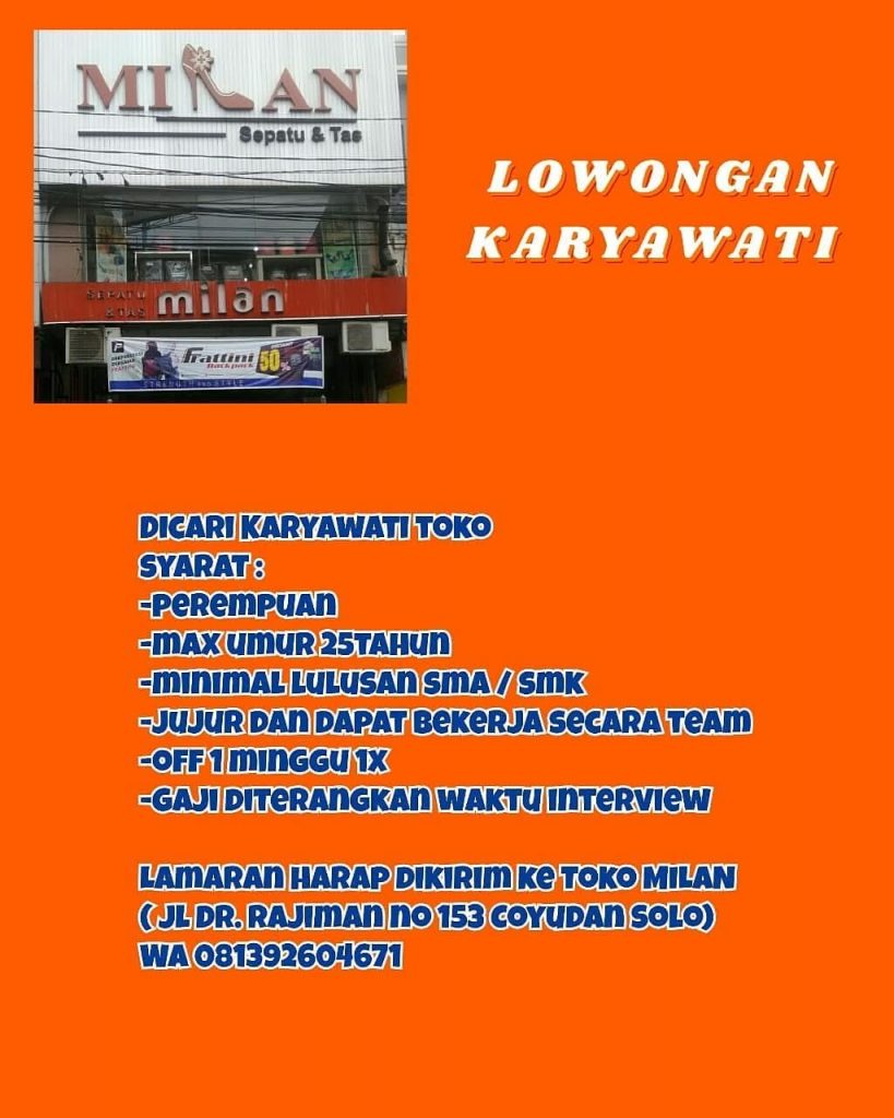 ? Loker Karyawati Toko Milan di Solo