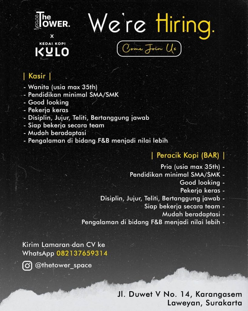 ? Loker Crew The Tower Space Kedai Kopi Kulo