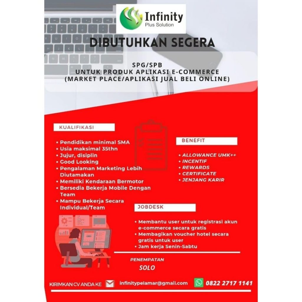 ? Loker SPG Produk Aplikasi E-commerce PT Infinity Plus Solution