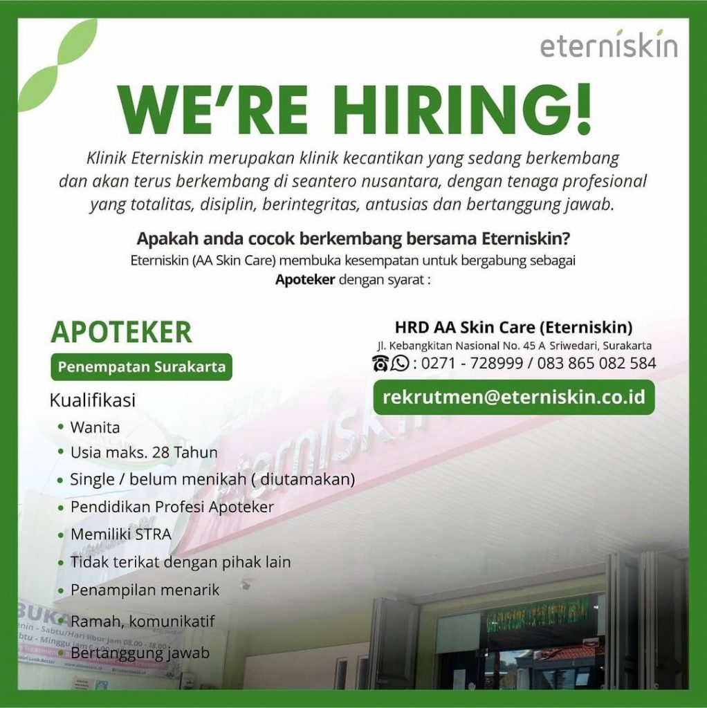 Lowongan Kerja Apoteker Wanita Eterniskin Solo