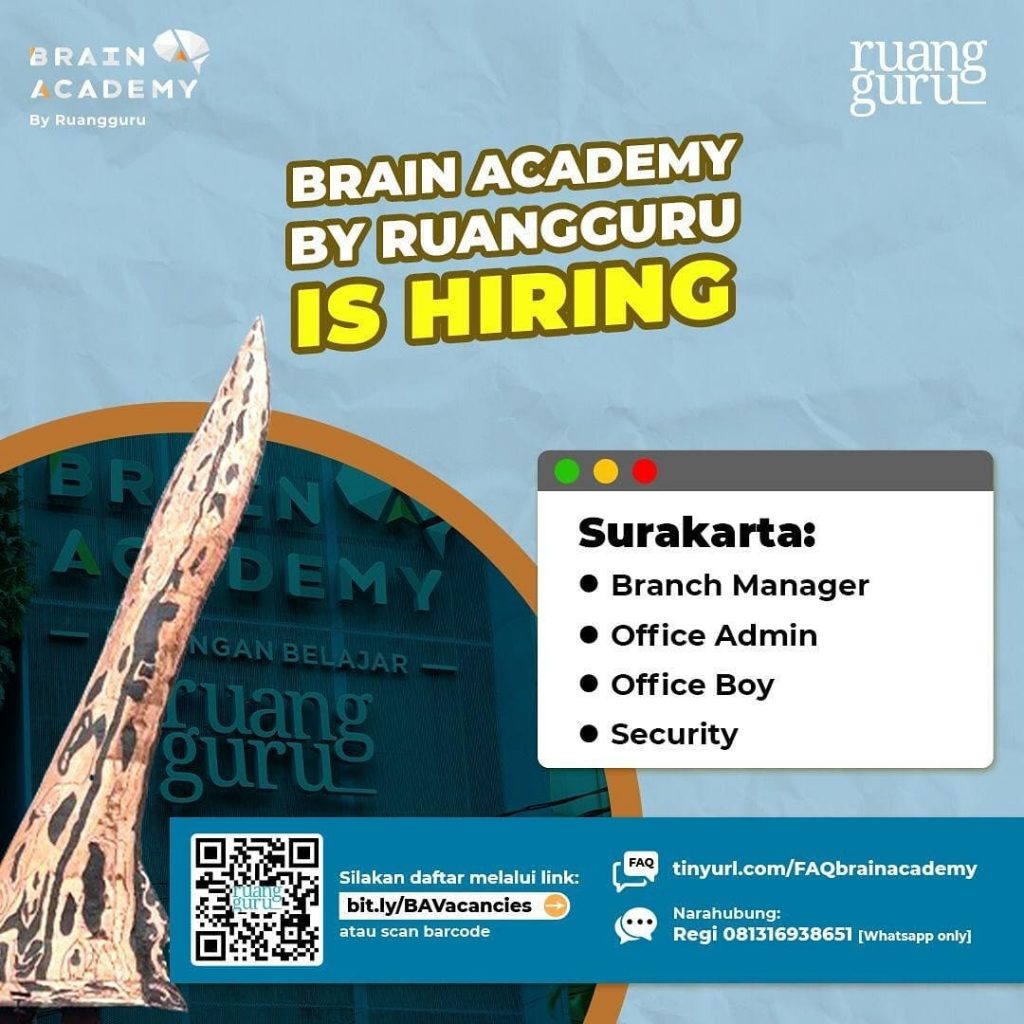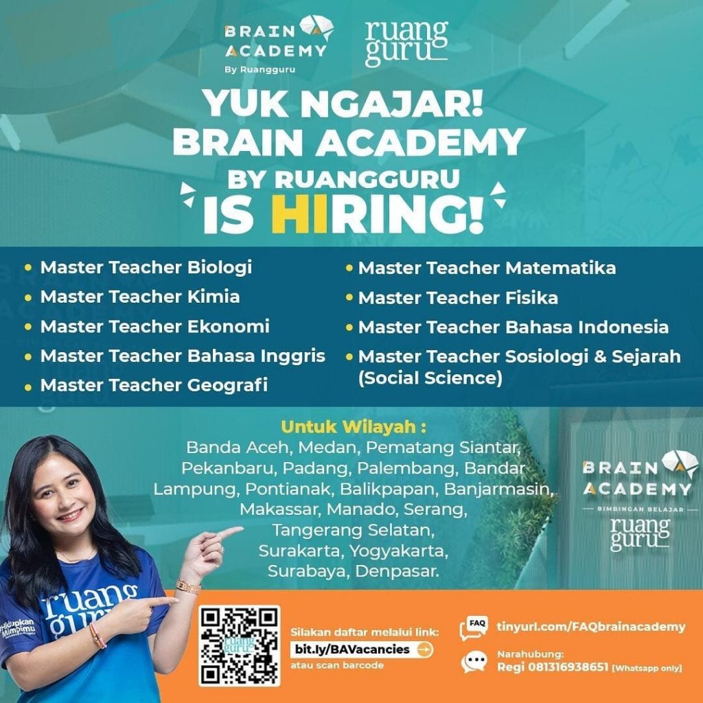 Brain Academy by Ruangguru mengajak kamu untuk #TemukanRuangmu bersama kami dengan membuka kesempatan besar untuk menjadi: