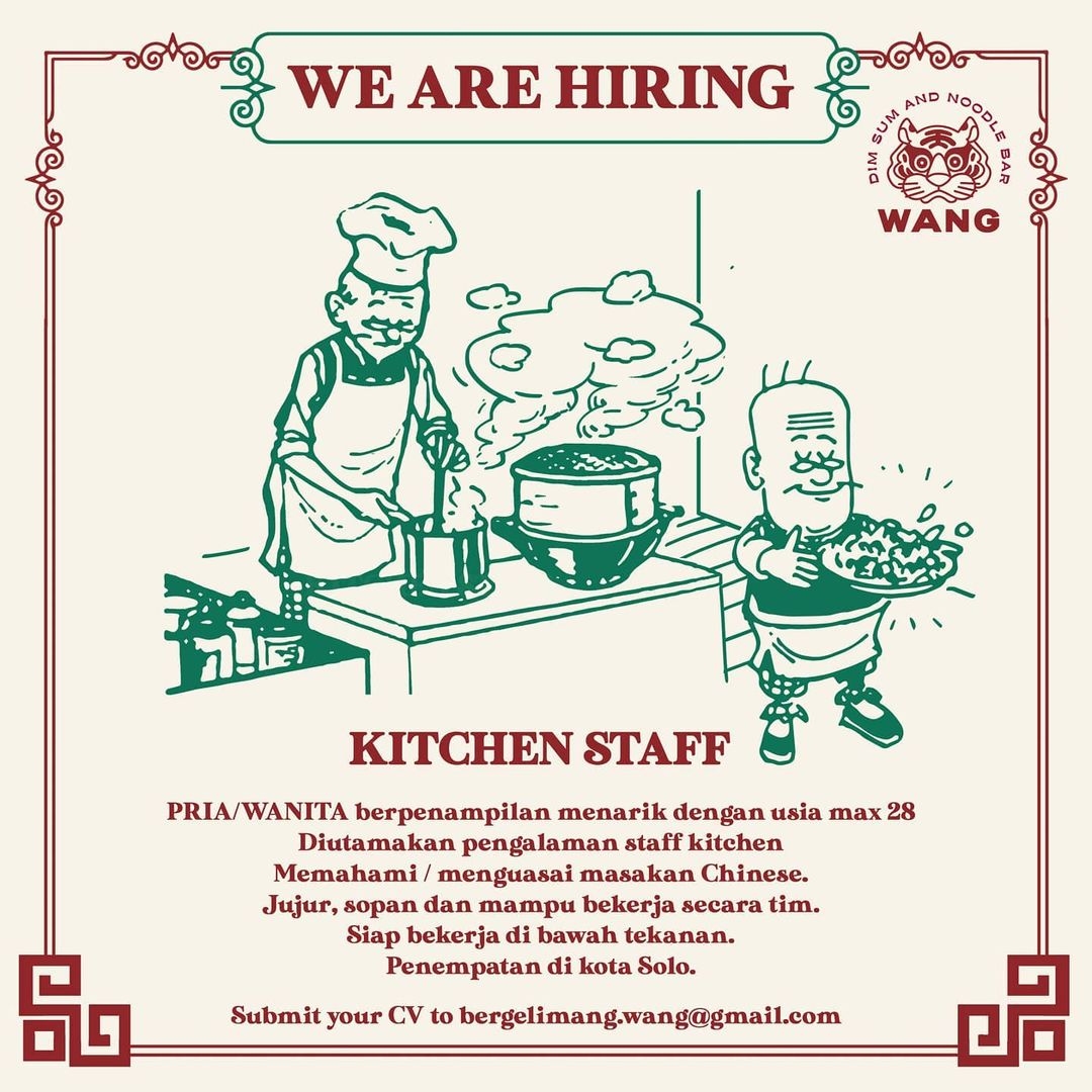 Sudah cek info Lowongan Kerja Kitchen Staff Wang Li Heng Chinese Restaurant di Solo? Lowongan Kerja bisnis kuliner di Solo.…