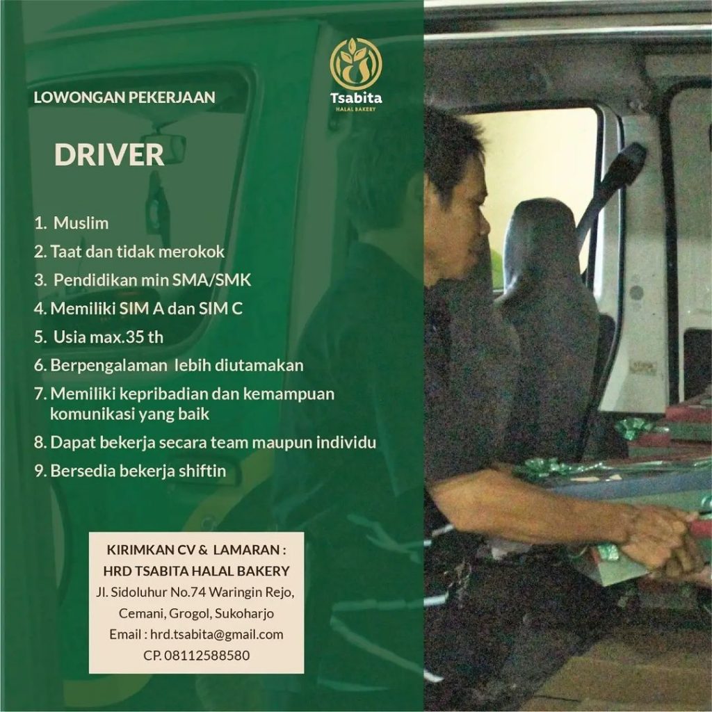 ? Loker Driver Tsabita Halal Bakery Sukoharjo