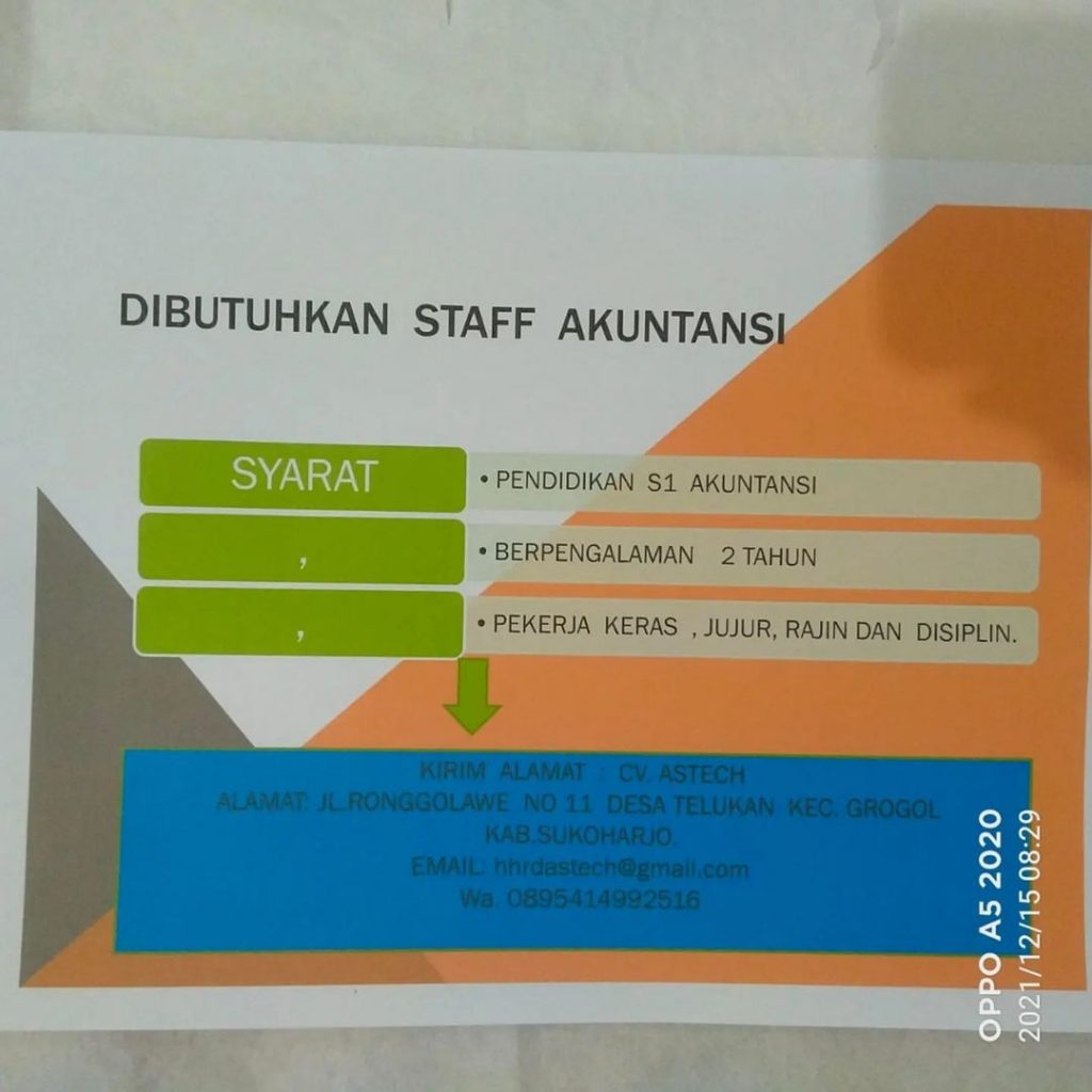 ? Loker Staff Akuntansi CV Astech Telukan Sukoharjo
