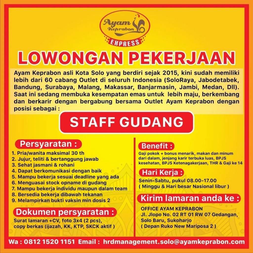 Ayo daftarkan diri Anda untuk menjadi bagian dari keluarga besar CV. Ayam Keprabon Indonesia penempatan Solo !!!