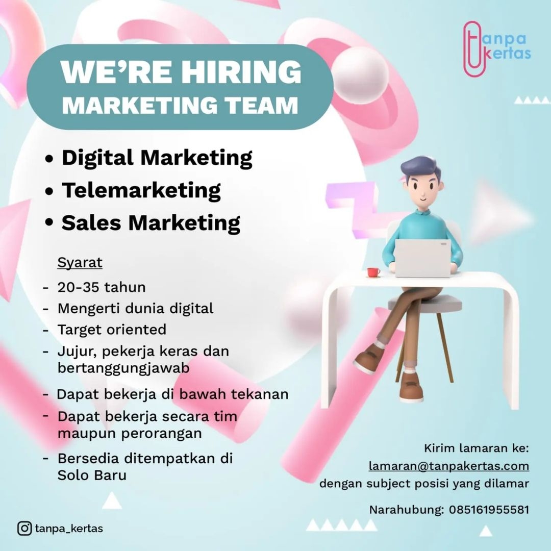 Sudah cek info Lowongan Kerja 2022 Team Tanpa Kertas di Solo? Lowongan Kerja bisnis jasa di Solo. Cari info loker solo terbaru? Cek sekarang juga….