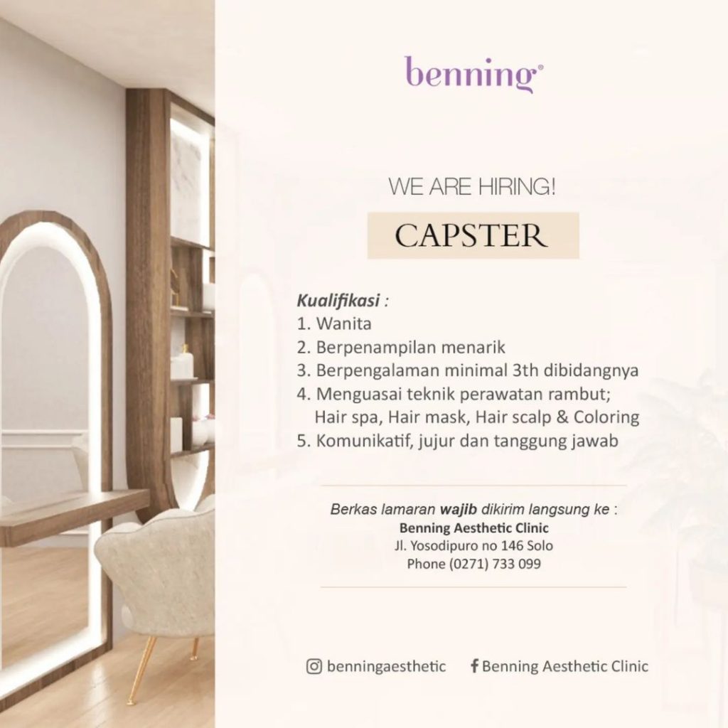 ? Loker April 2022 Capster Benning Clinic di Solo