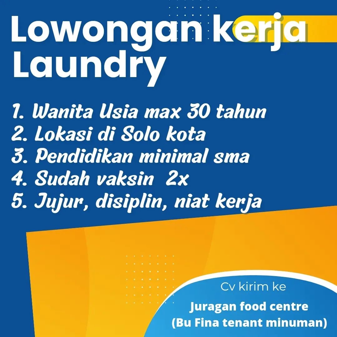 Sudah cek info Lowongan Kerja Mei 2022 Wanita Petugas Laundry Solo Kota? Lowongan Kerja bisnis jasa di Solo. Cari info…
