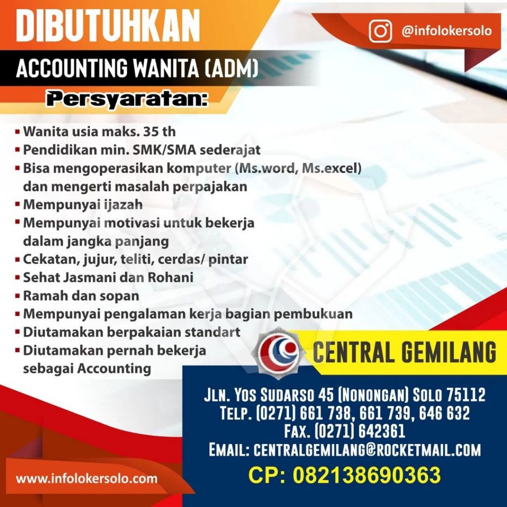 ? Loker Mei 2022 Accounting Central Gemilang di Solo