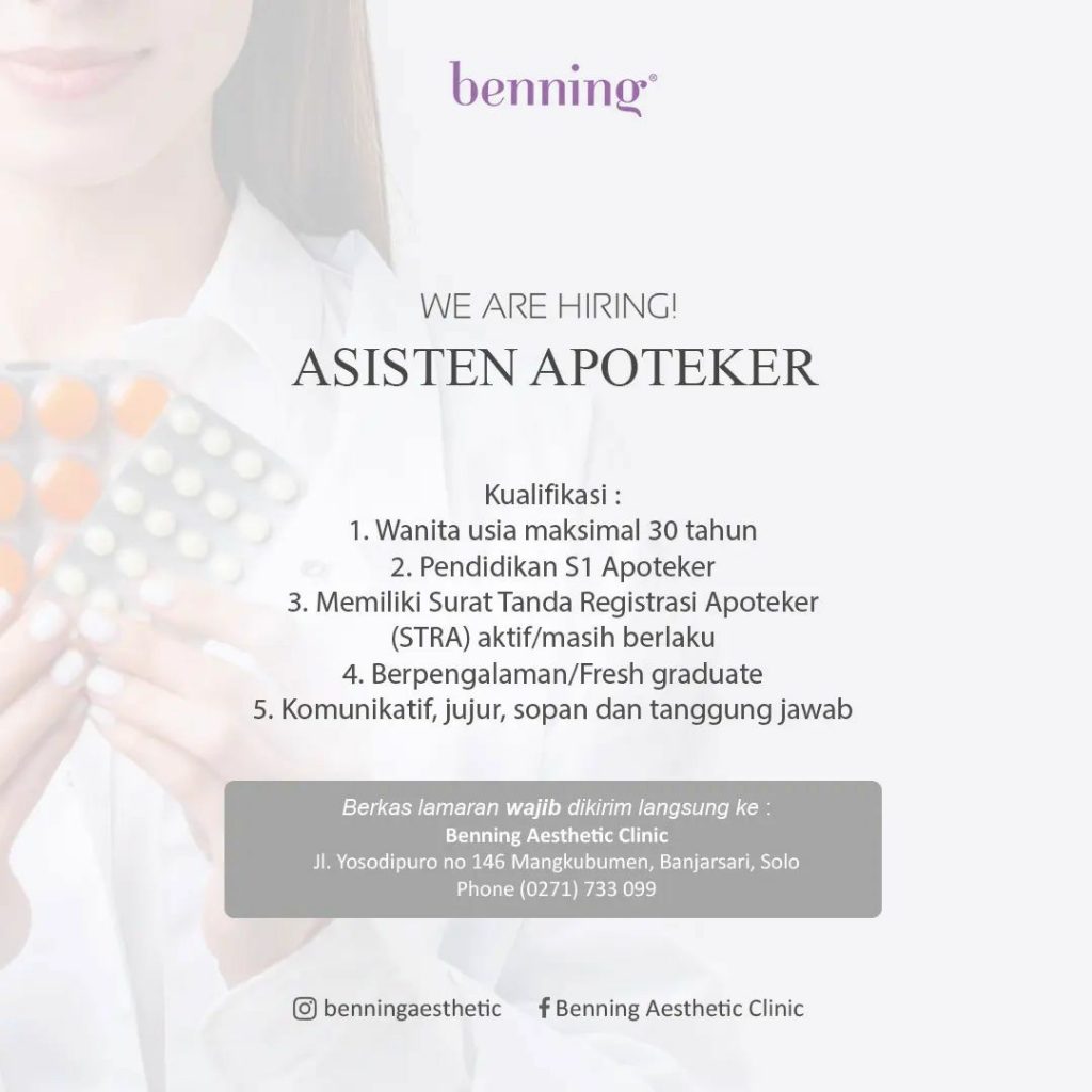 ? Loker Juni 2022 Asisten Apoteker Benning Aesthetic Clinic