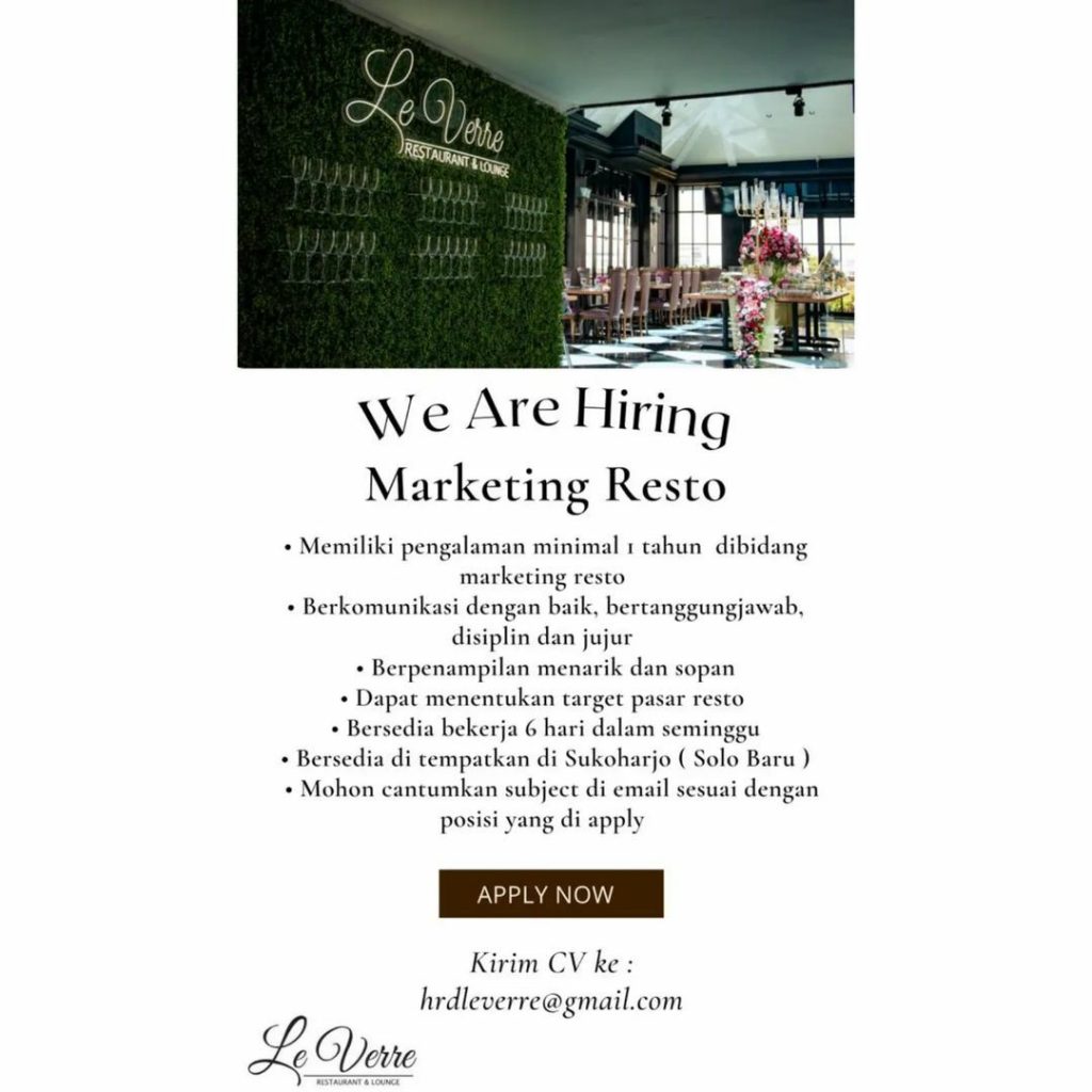 ? Loker Juli 2022 Marketing Le Verve Restaurant di Solo