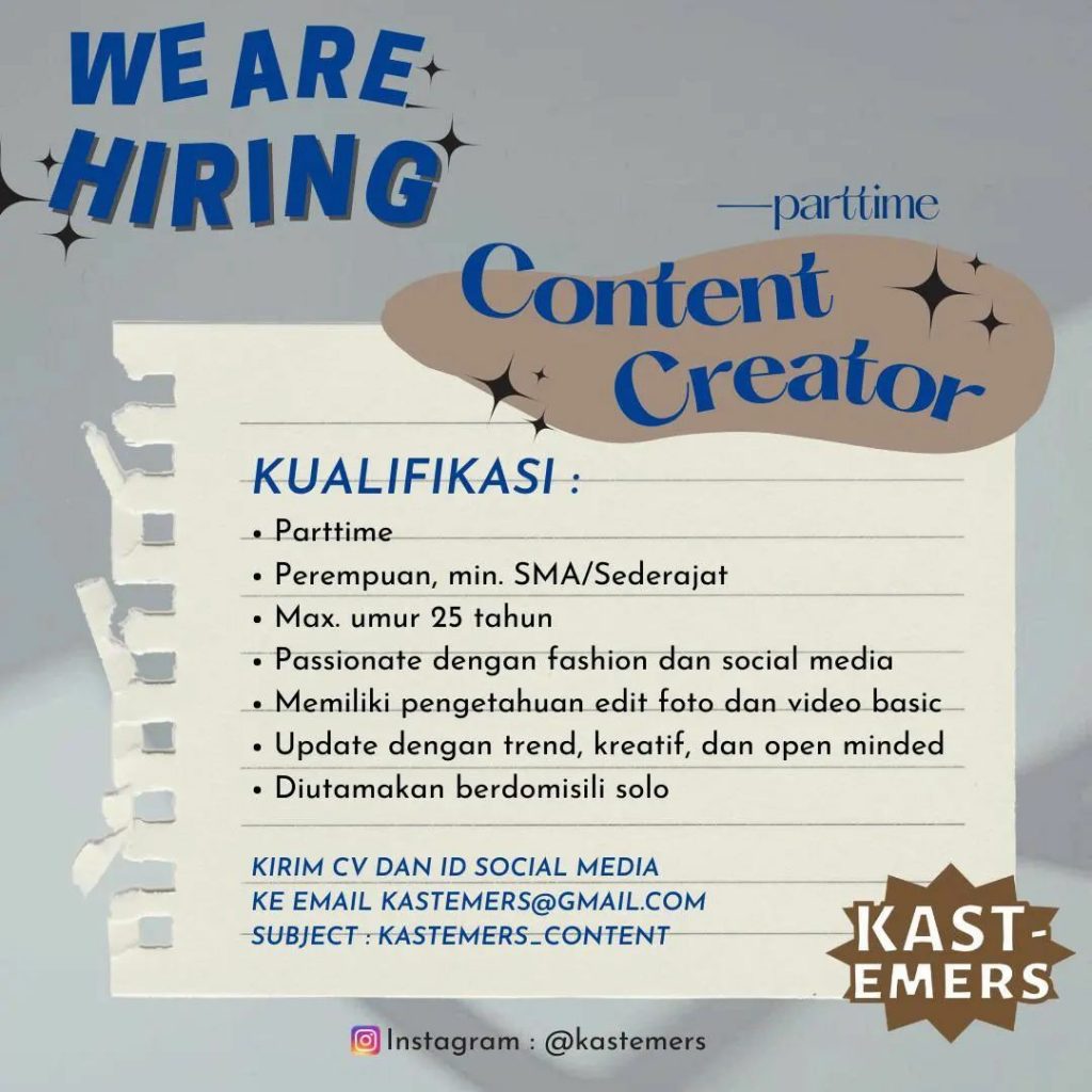 ? Loker Agustus 2022 Content Creator Kastemers di Solo