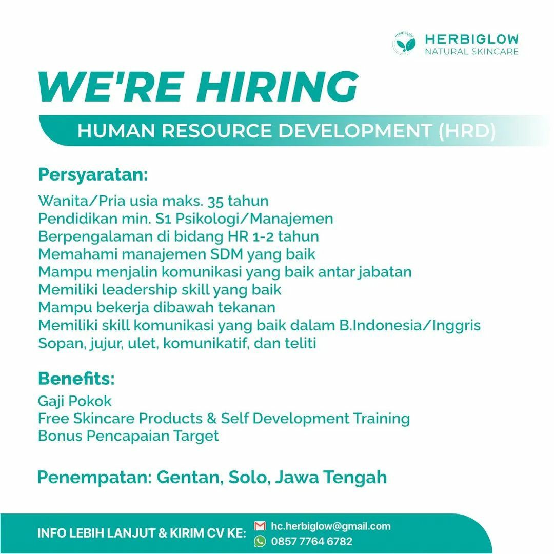 ?Loker Oktober 2022 HRD Herbiglow Natural Skincare di Solo