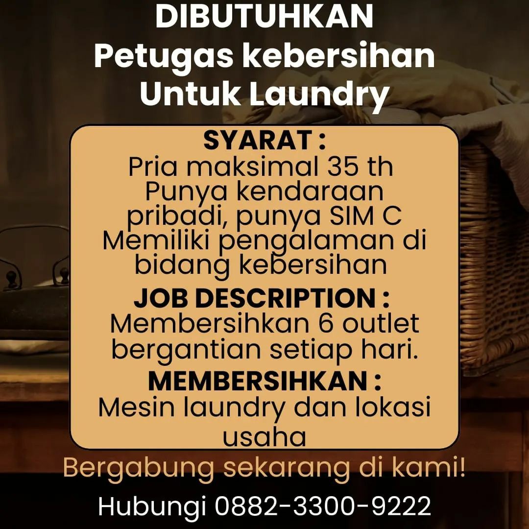 Lowongan Kerja November 2022 Petugas Kebersihan Laundry di Solo