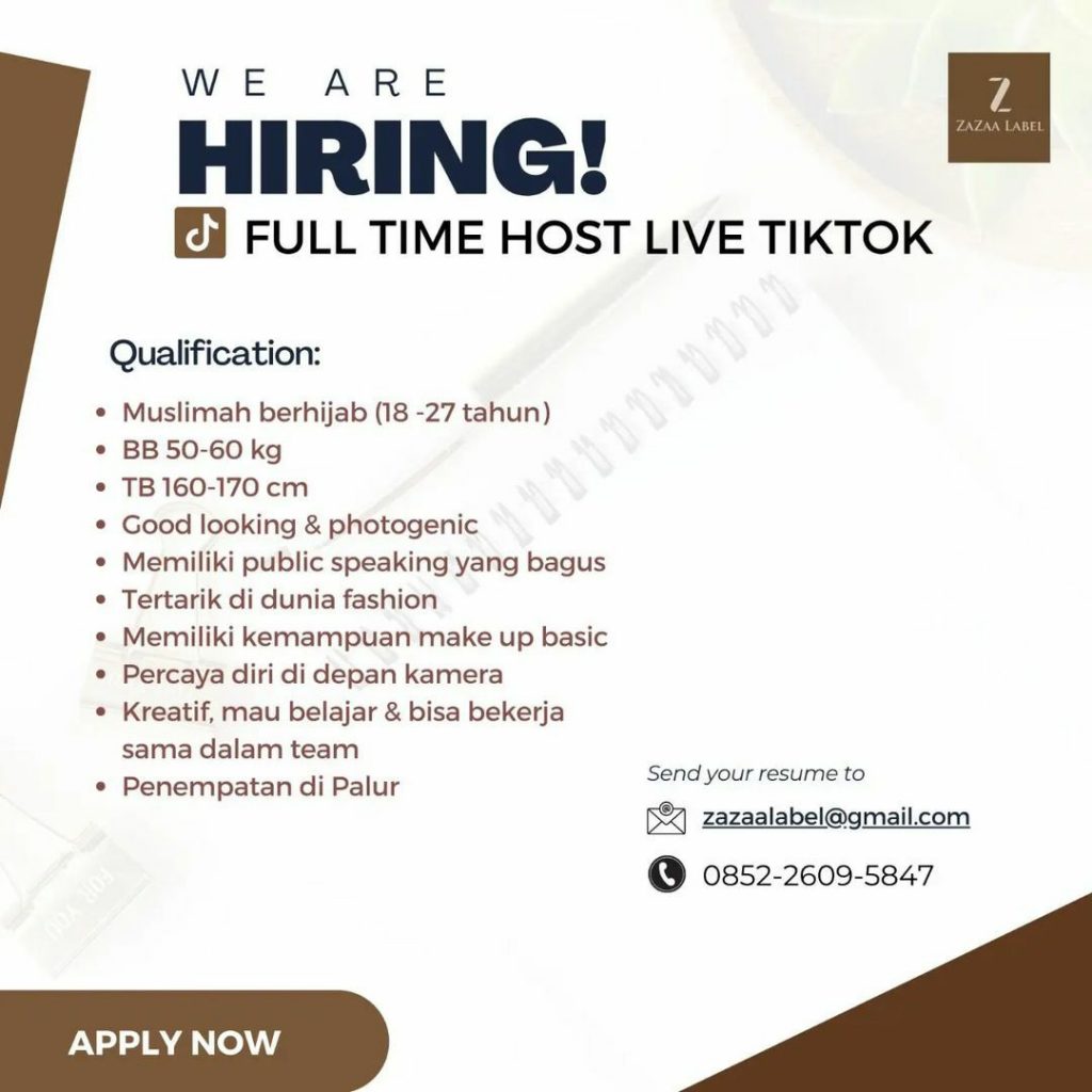 ? Loker November 2022 Host Live Tiktok Zazaa Label di Solo
