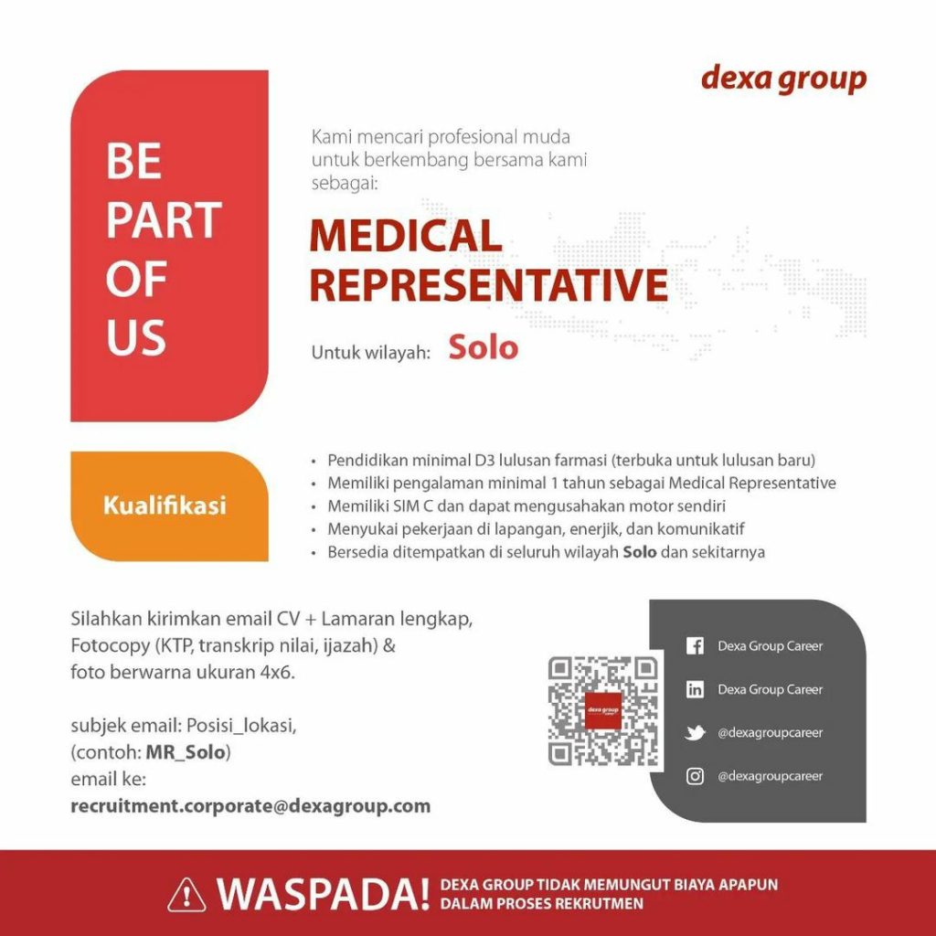 ? Loker Desember 2022 Medical Representative Dexa Group di Solo