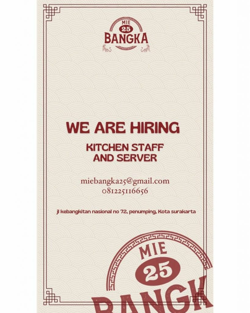 ? Loker Januari 2023 Crew Outlet Mie Bangka 25 di Solo