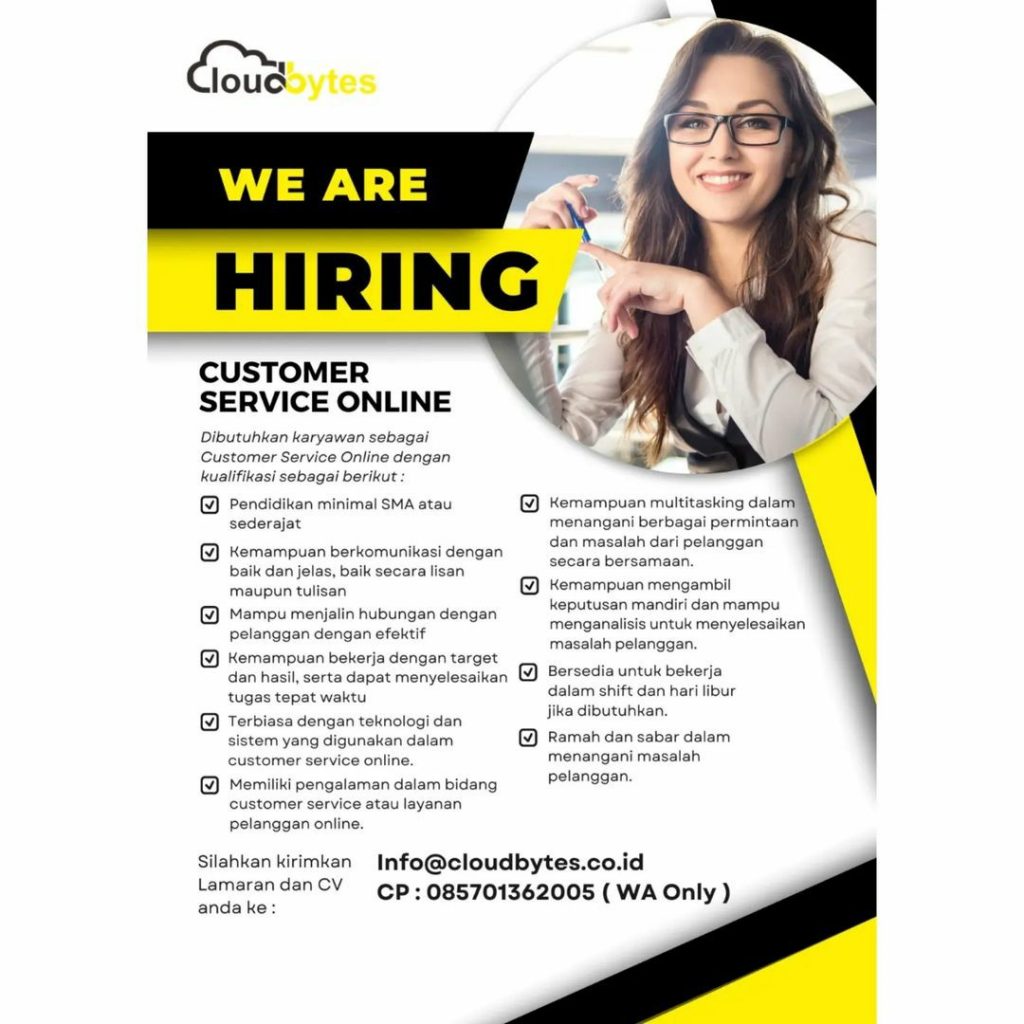 Sudah cek info Lowongan Kerja Maret 2023 Team Perusahaan Cloudbytes di Solo? Lowongan Kerja bisnis jasa di Solo. Cari info loker solo terbaru ? Cek sekarang juga….