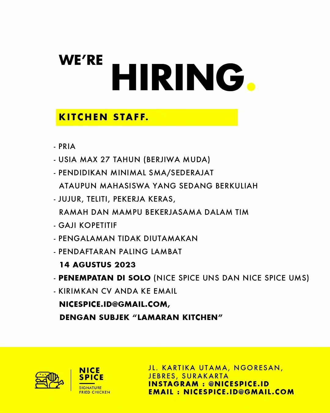 ???? Loker Juli 2023 Kitchen Staff Nice Spice Solo Terbaru