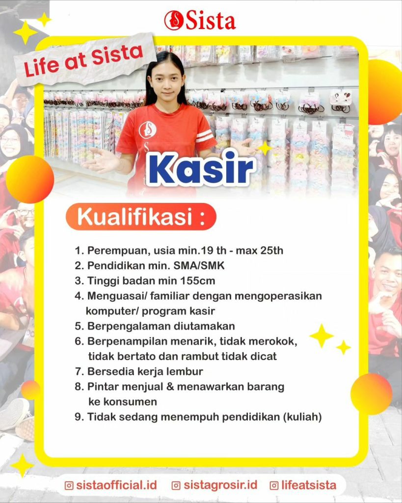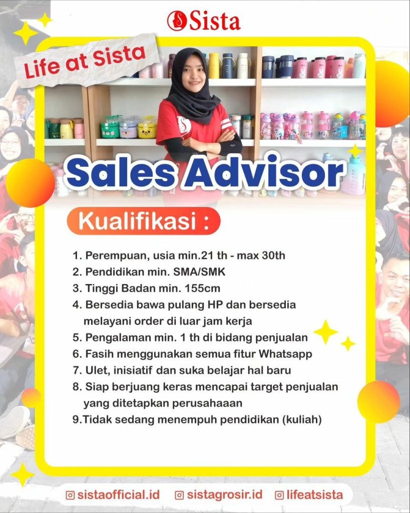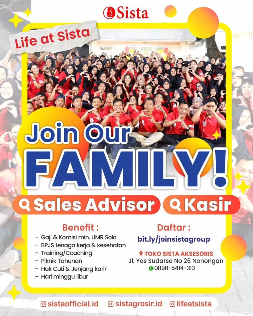 Sudah cek info Lowongan Kerja Agustus 2023 Sales Sista Group di Solo? Lowongan Kerja bisnis fashion di Solo. Cari info loker solo terbaru ? Cek sekarang juga….