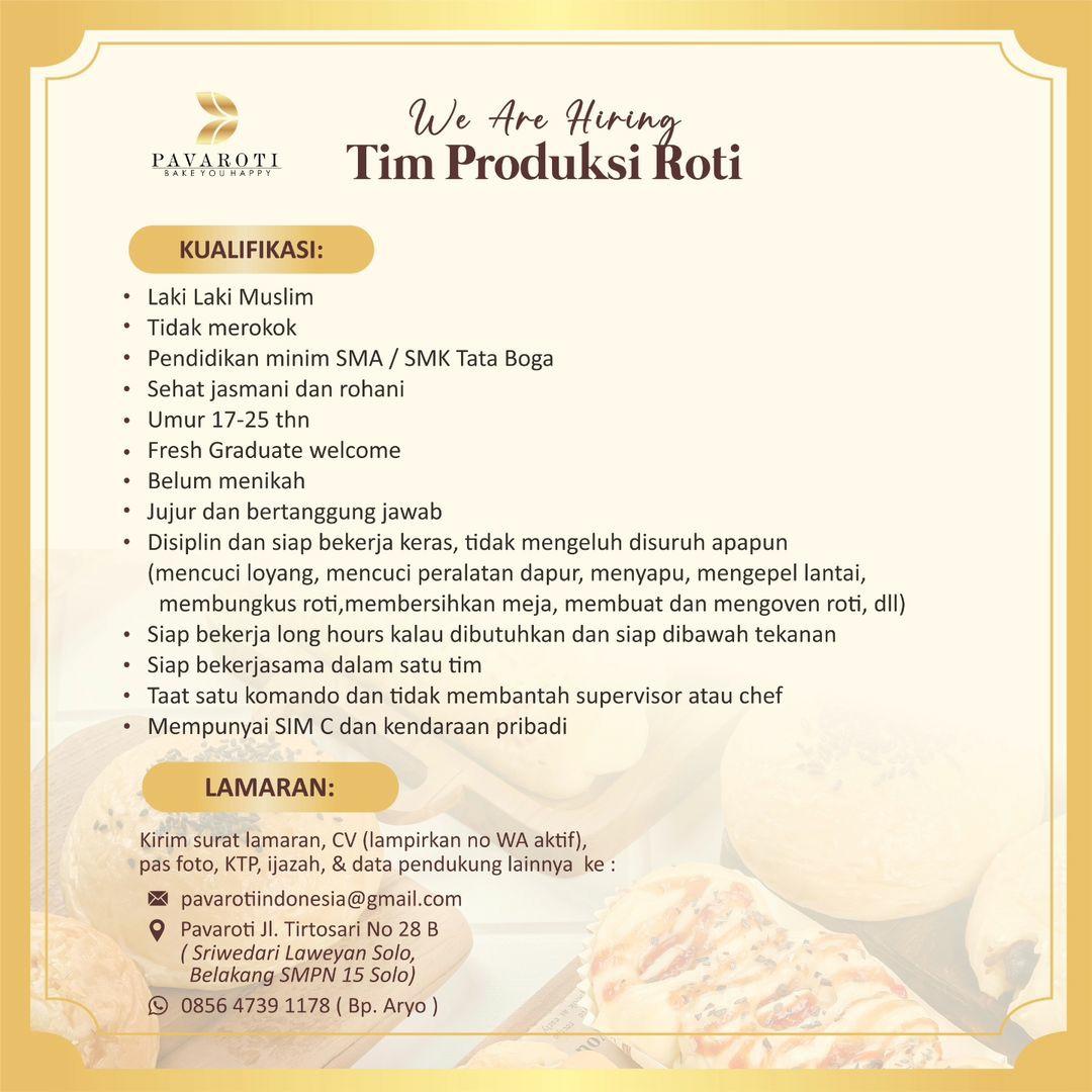 Sudah cek info Lowongan Kerja Desember 2023 Kasir Pavaroti di Solo? Lowongan Kerja bisnis kuliner di Solo. Cari info loker solo terbaru ? Cek sekarang juga….