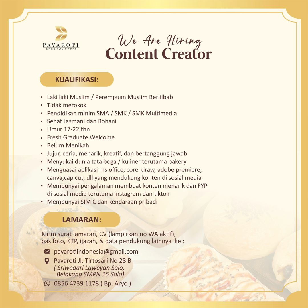 Yuk jadi bagian @pavaroti.id Squad!! We are hiring untuk posisi :