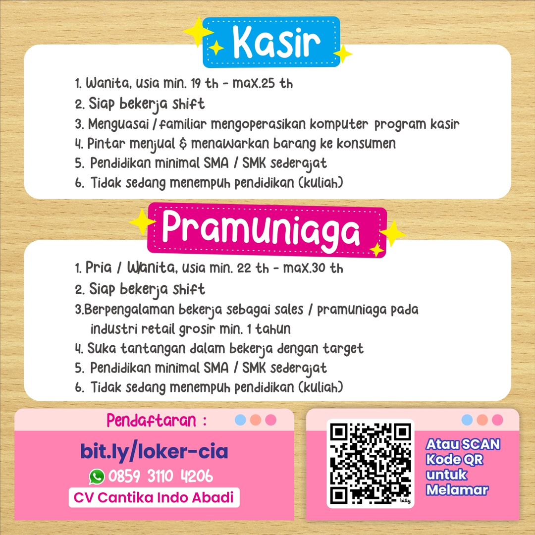 ???? Loker Mei 2024 Pramuniaga Toko CV Cantika Indo Abadi di Solo
