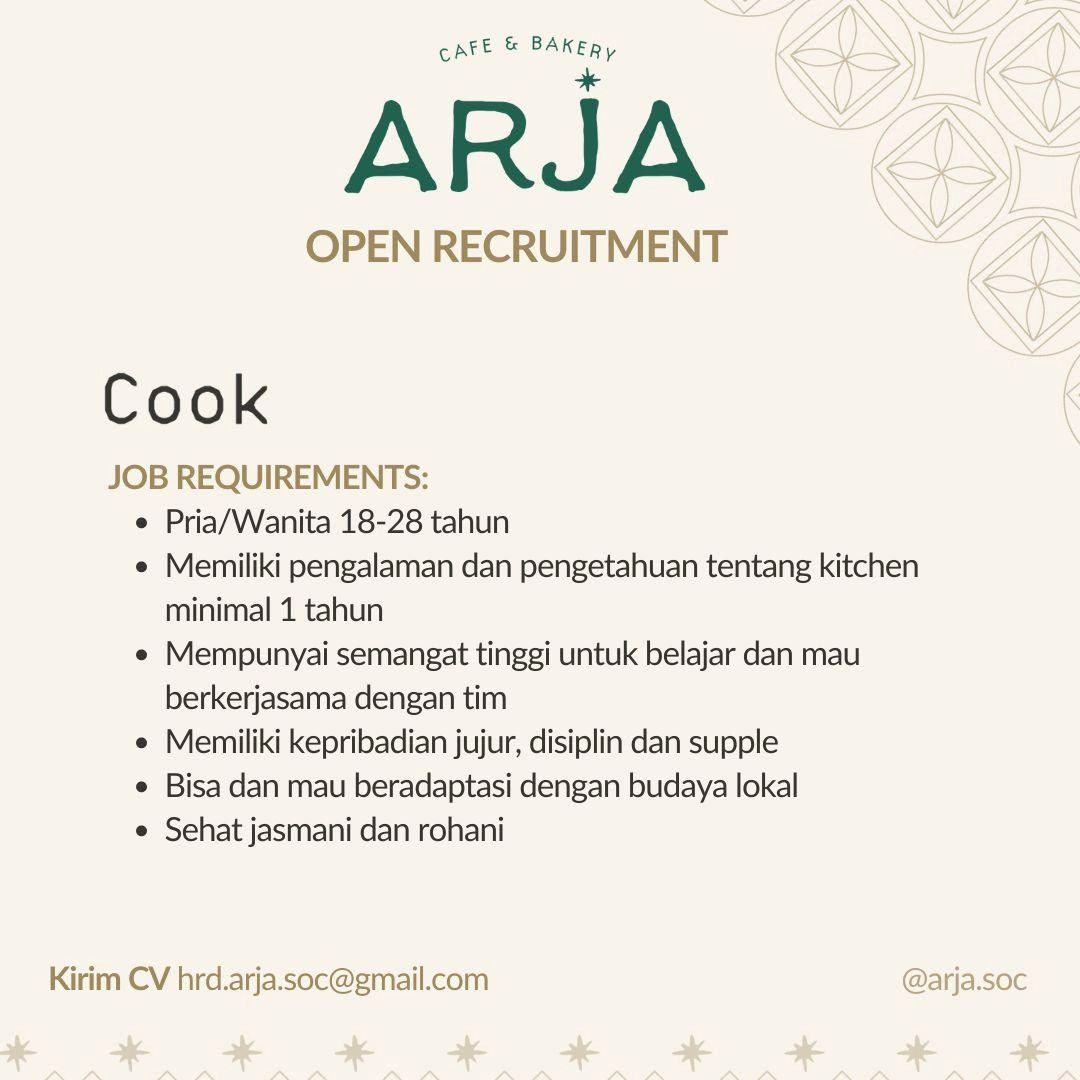 ????Loker Juli 2024 Cook Arja Cafe Bakery di Solo