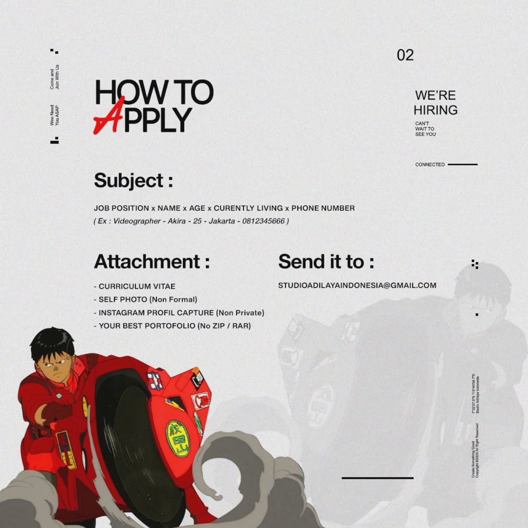 Posisi job (Videographer) – Nama Lengkap – Umur – Domisili – Nomor HP aktif