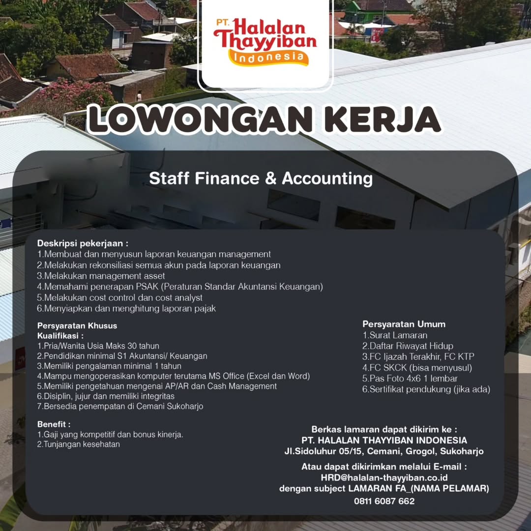 Lowongan Kerja November 2025 Staff Accounting PT Halalan Thayyiban di Solo