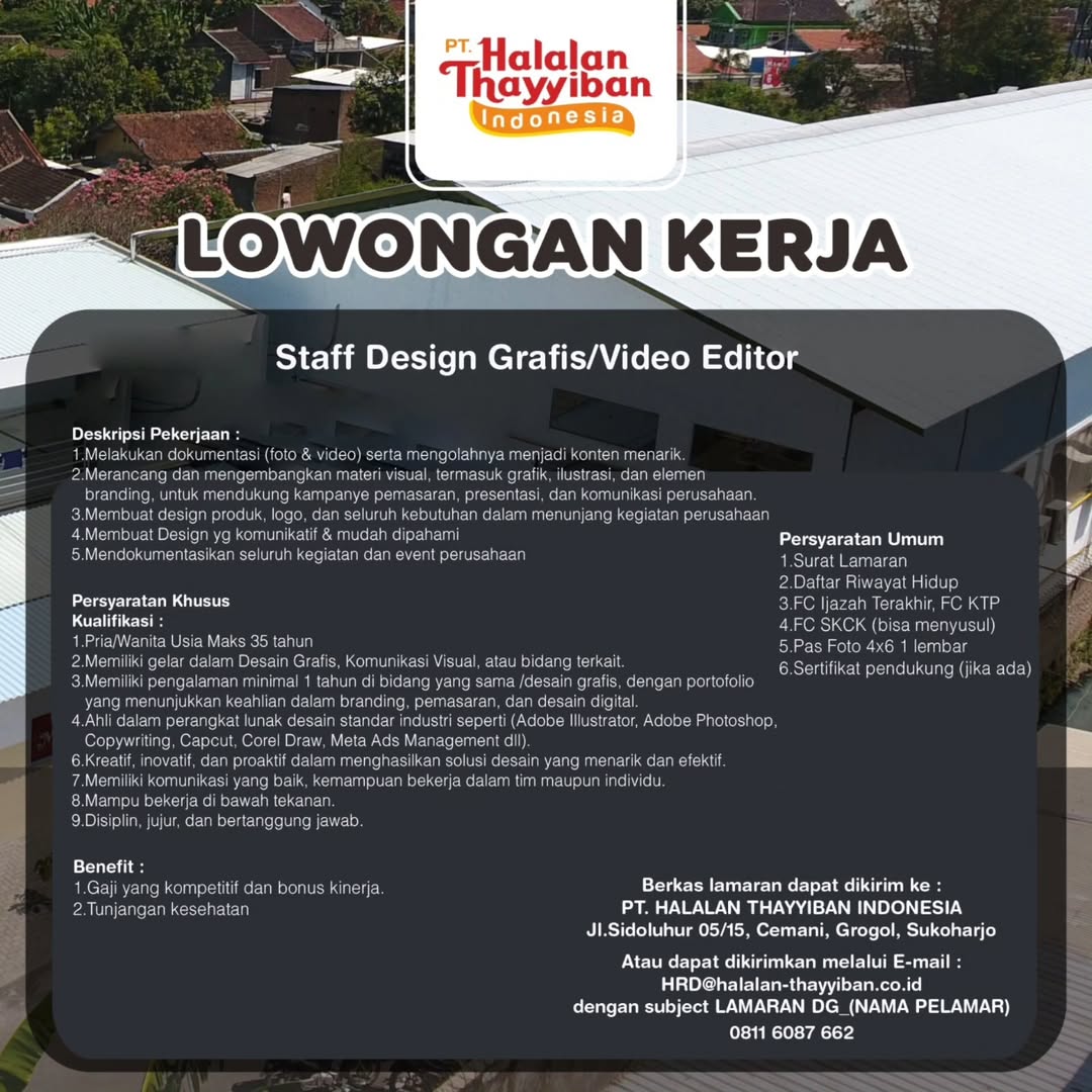 Sudah cek info Lowongan Kerja November 2025 Staff Desain Grafis PT Halalan Thayyiban di Solo? Lowongan Kerja bisnis kuliner di…