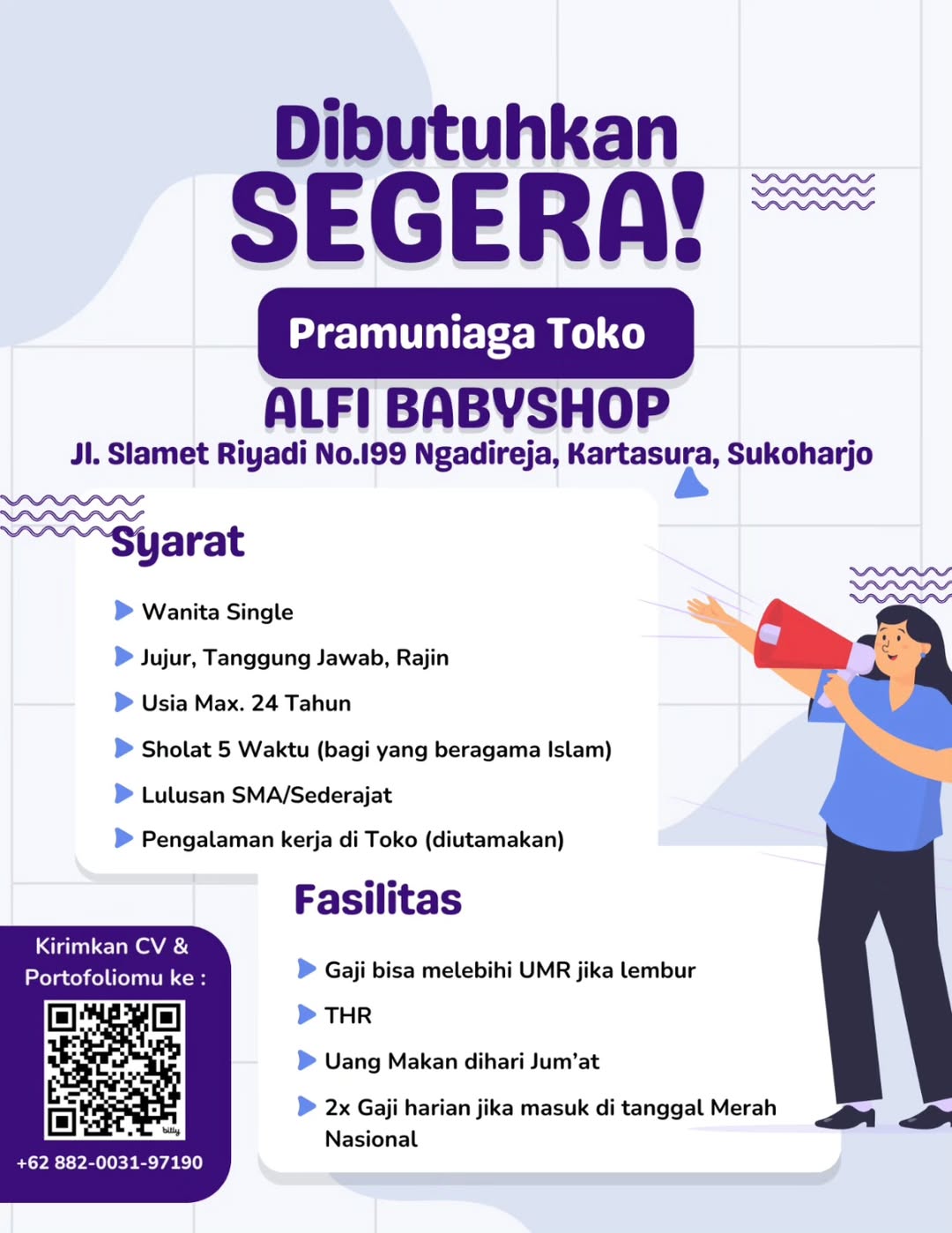 ????Loker Maret 2026 Pramuniaga Toko Alfi Babyshop di Solo