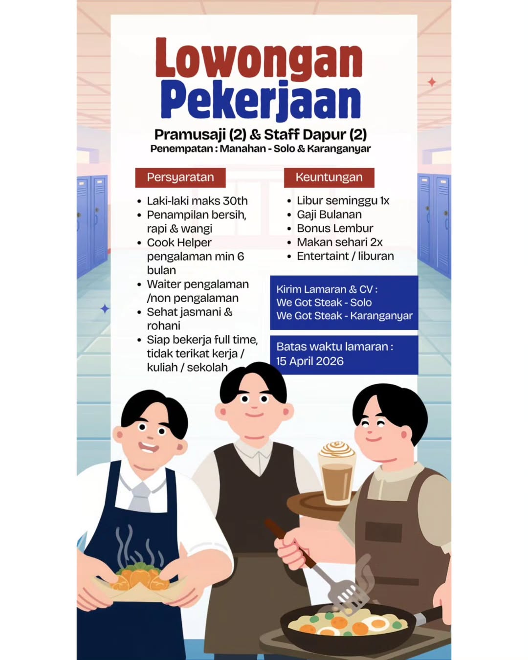 ????Loker April 2026 Pramusaji We Got Steak di Solo