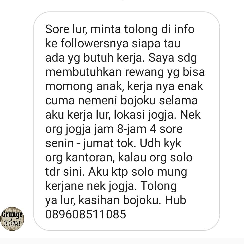 Sudah cek info Lowongan Kerja Asisten Rumah Tangga Momong Anak di Jogja? Lowongan Kerja jasa di Solo. Cari info loker…