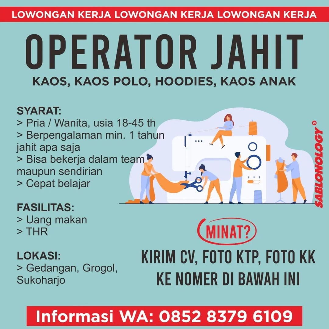 Lowongan Kerja Operator Jahit Menjahit Sablonology Solo Baru
