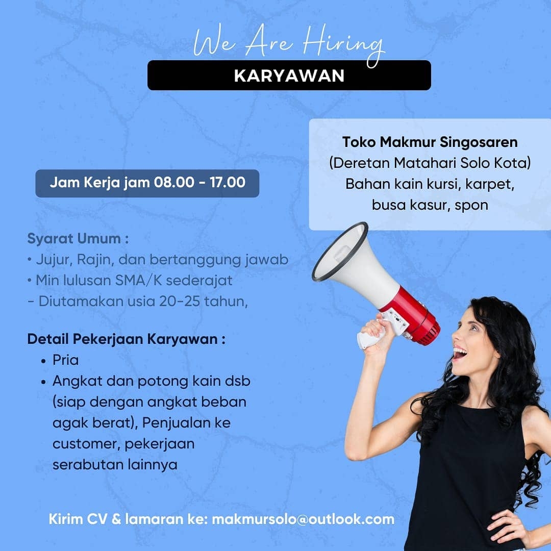 Sudah cek info Lowongan Kerja Karyawan Toko Makmur Singosaren Kota Solo? Lowongan Kerja bisnis toko di Solo. Cari info loker…